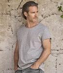 100% ringspun combed cotton.* Relaxed fashion fit. Narrow ribbed wide neckline. Taped neck and shoulders. Roll-up sleeves with bar tacks. Side seams. Twin needle hem.